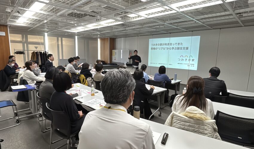 質疑応答では、「働いている人のバックボーンを知りたい」という質問が出てきました。この背景には、「勉強会の内容を聴いてみた結果、本当に広範な領域について理解した上で支援に当たらなければならない仕事が、居住支援領域における相談支援員の仕事なのだ」ということを認識されてのものだったのではないかなと思います。回答をお伝えすると、質問者を含めた参加者の方々は驚きを隠しきれないご様子でした。つみきの家の場合、若干名、福祉系の仕事をしてきた経験を持つ職員がいますが、その他大勢は業界未経験だからです。
